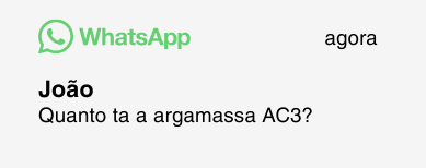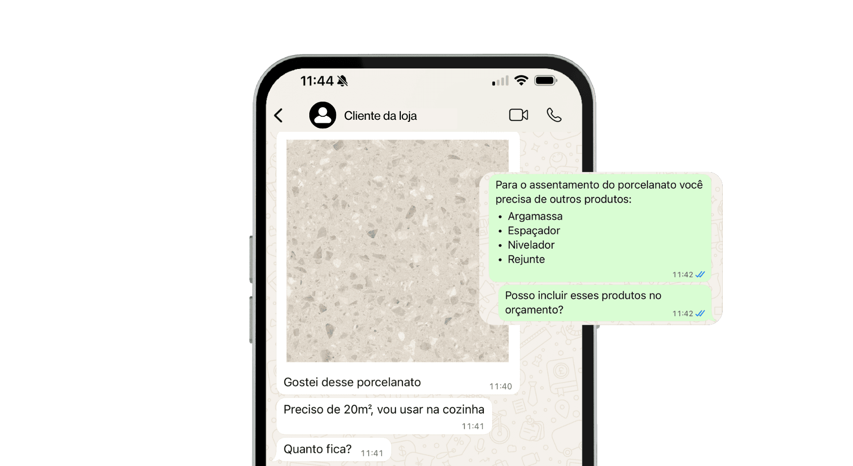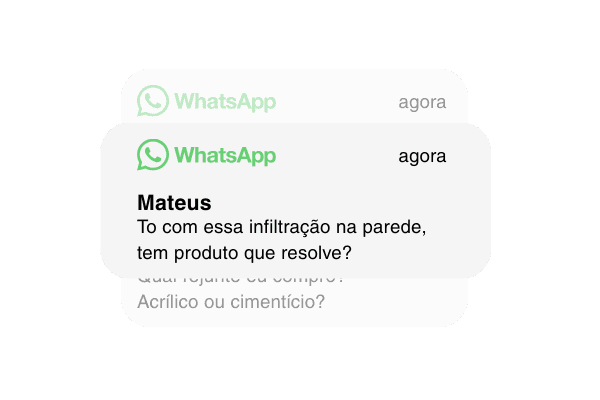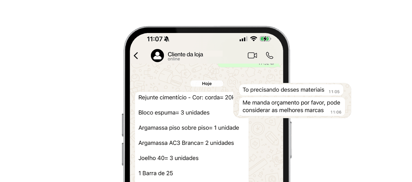 Um agente de vendas com IA treinado para materiais de construção: entende o vocabulário de obra, orienta o cliente e acelera o fechamento.