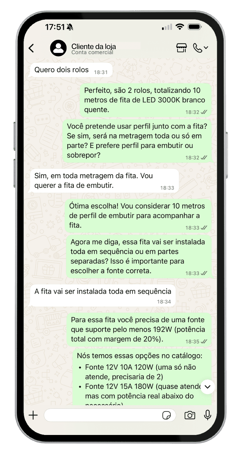 Veja o agente vendendo no seu cenário real de loja e decida com dados, não promessa. Agende uma demonstração.